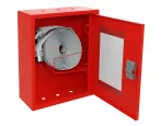 По типу монтажа – навесной, по наличию смотрового окна на дверце шкафа – открытый, по цвету изделия – красный (RAL 3000).