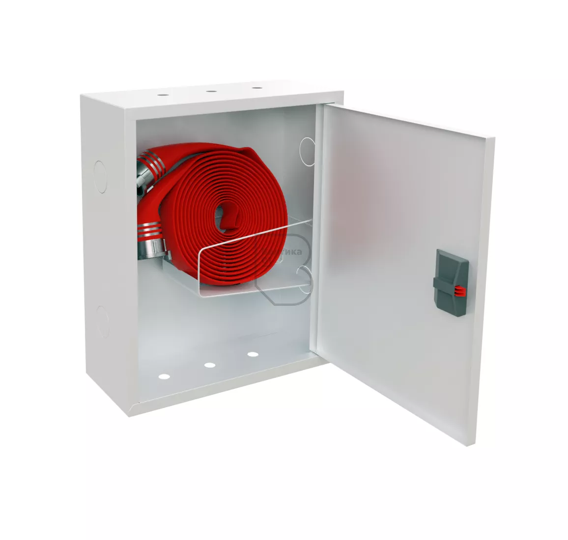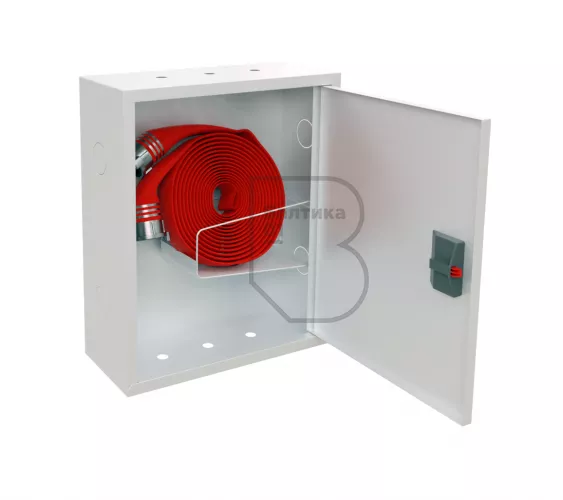 Дверца пожарного шкафа открывается на 160 градусов. Имеет запорное устройство в виде пластиковой защелки.