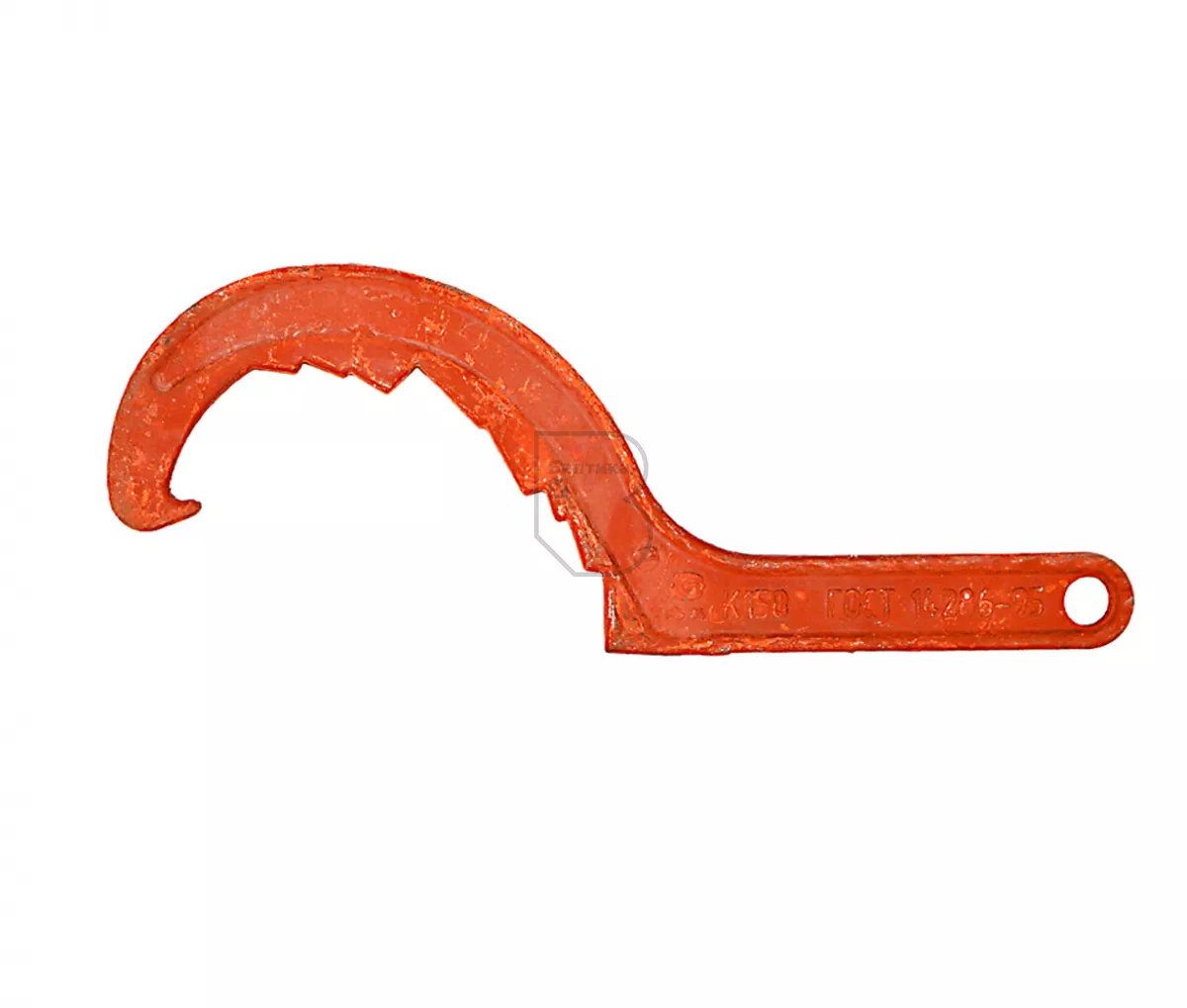 Ключ для пожарной арматуры К-150 изготовлен из ковкого чугуна марки КЧ 30-6. Используется для смыкания соединительных головок до диаметра 150 мм. Имеет антикоррозийное покрытие. Цвет – красный.