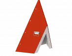Пирамида для пожарного гидранта имеет треугольное основание, выполнена из металлических листов. Для удобства установки, переноски или снятия с колодца имеет по бокам ручки. Пирамида окрашена в сигнальный красный цвет, чем привлекает к себе внимание с большого расстояния, тем самым предостерегая от несчастных случаев при проведении работ.