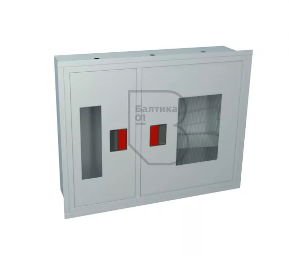 Дверцы пожарного шкафа открываются на 160 градусов. Имеют запорное устройство в виде пластиковой защелки. На каждой дверце имеется смотровое окно со вставкой из поликарбоната.